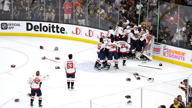 LAS VEGAS, NV – JUNE 07: The Washington Capitals celebrate their 4-3 win over the Vegas Golden Knights to win the Stanley Cup in Game Five of the 2018 NHL Stanley Cup Final at T-Mobile Arena on June 7, 2018 in Las Vegas, Nevada. (Photo by Isaac Brekken/Getty Images)